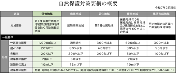 保養地域の中だけと、隣接する土地が居住地域や近隣商業地のケースは緩衝地域として最低敷地面積が500㎡になります。
