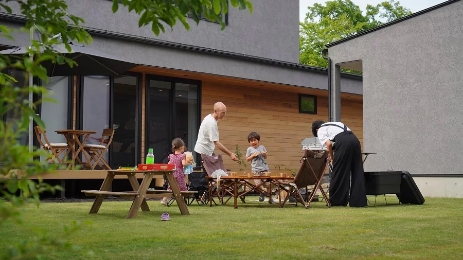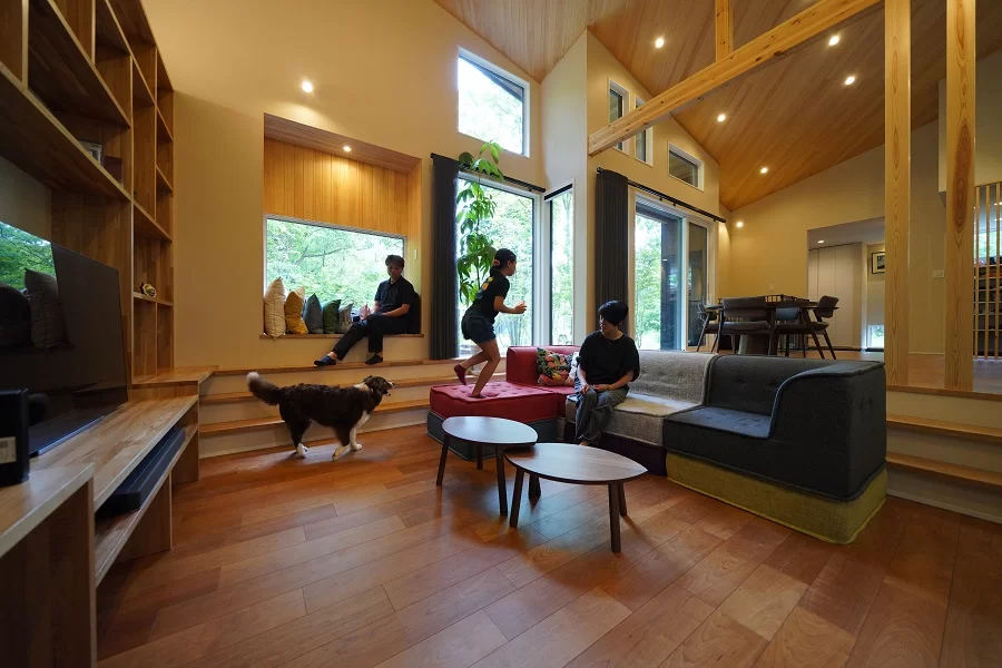 自然の中でのびのびと遊び、大きなソファーのあるリビングではゆったりくつろげ、豊かな時が流れます。