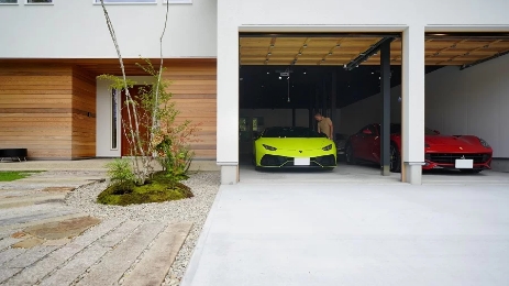 開放的で“地に足のついた生活”を満喫されています。力強く、そして優しく家族を包む家と、家族と共に成長していく庭が魅力的です。走り回って自由に遊べる広い庭や吹き抜けのリビング、4台収容可能なガレージやゴルフのシミュレーションルームがあります。