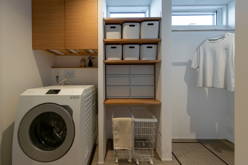 取り出しやすいタオルストッカーや収納など、お施主様の要望を反映させた造作家具には、ライフスタイルに沿った快適で暮らしやすくするための工夫がたくさん込められています。