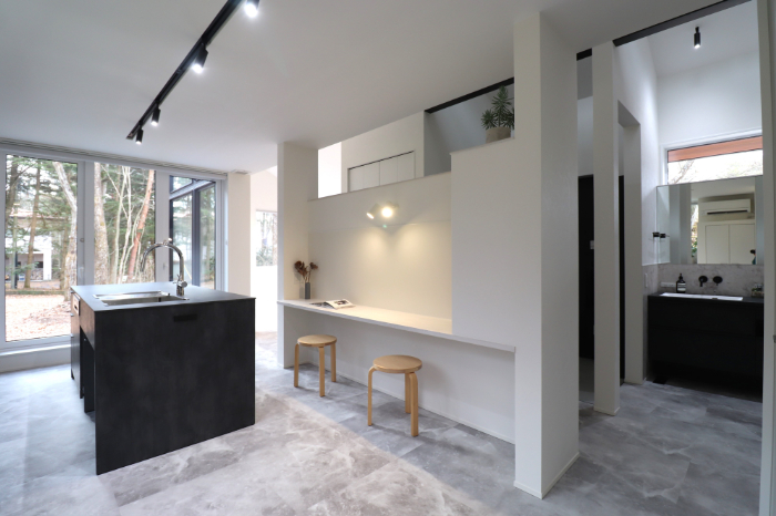 リビングダイニングは斜めに配置し、緩やかに繋がりながらも各スペースがそれぞれ特徴を持った場となっています。