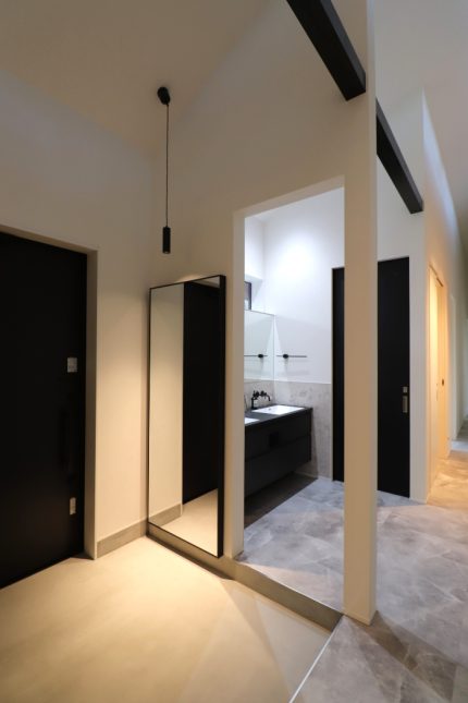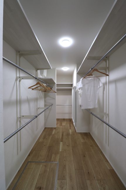 回遊動線や行き止まりのないプランなので、家事の効率化や床面積以上の広がりを実現しています。