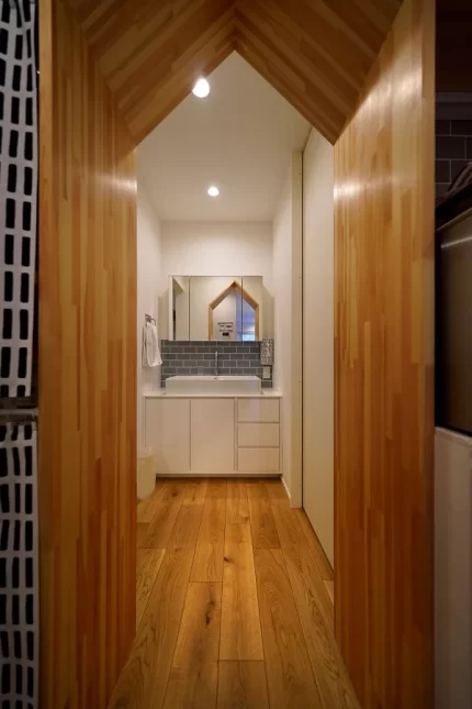 北欧スタイルの三角屋根のお家はオープンな間取りです。