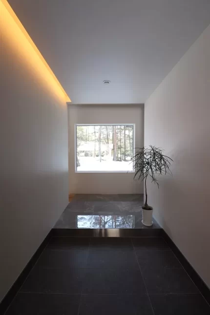 玄関を入った正面には、自然の景色を切り取る大きなピクチャーウィンドウがあります。