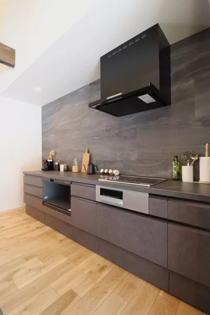 軒のかかるプライベートテラスで内と外が繋がり、ホテルライクでリラックスできるガレージハウスです。