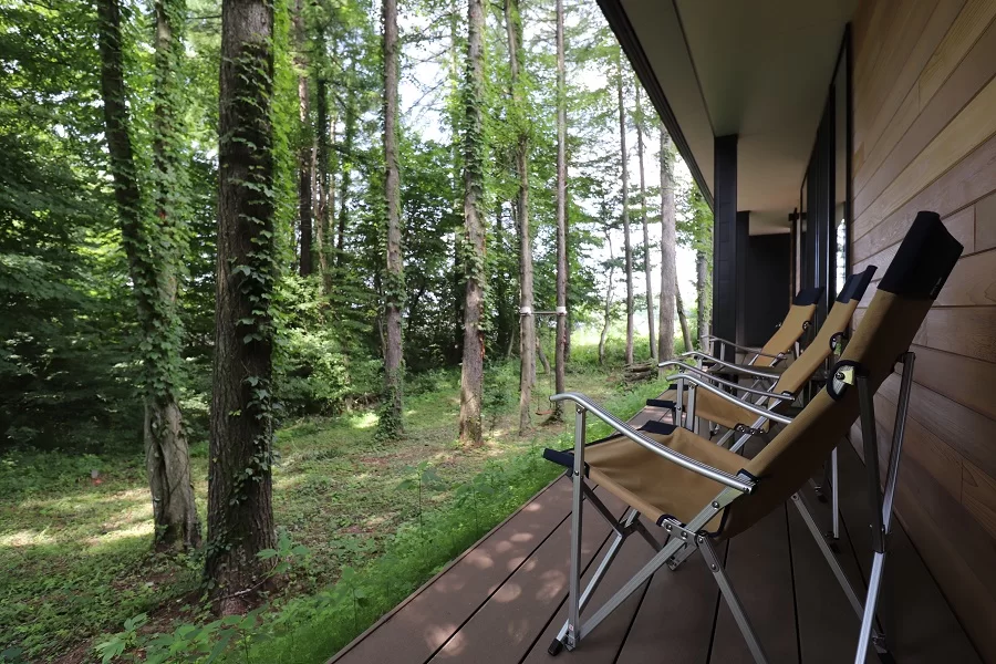 大人数で食事を楽しみ、周りの自然に癒されながらゆっくりと流れる時間を過ごすことができます。