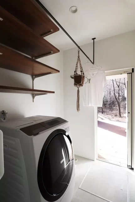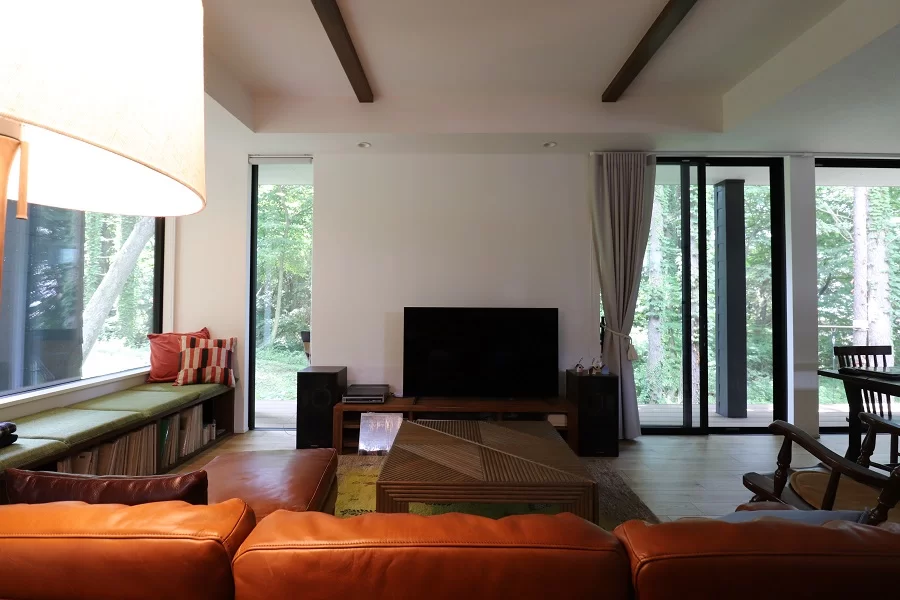 家の中にいても森と繋がっているような感覚があり、南東にはL字の広いデッキがあります。